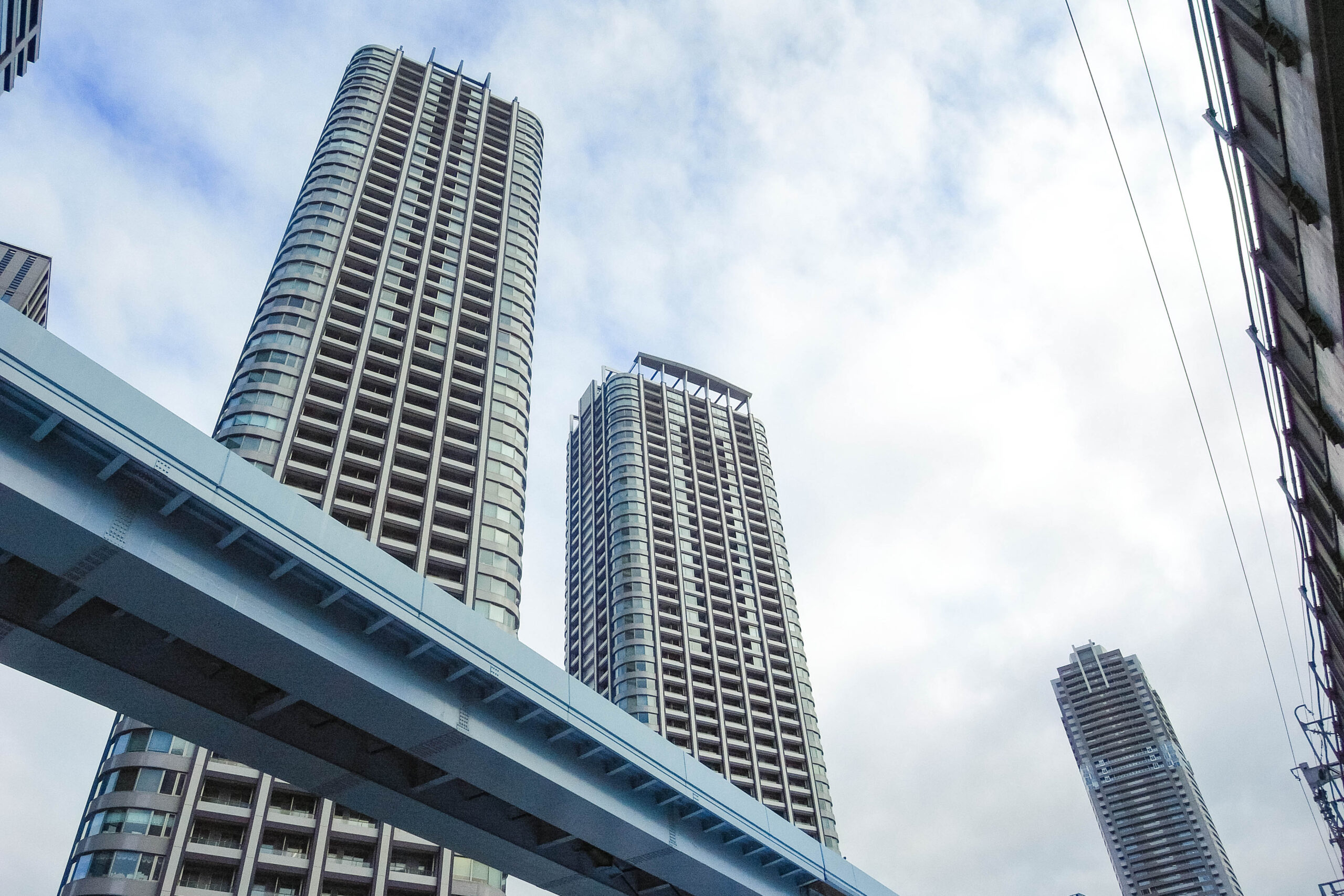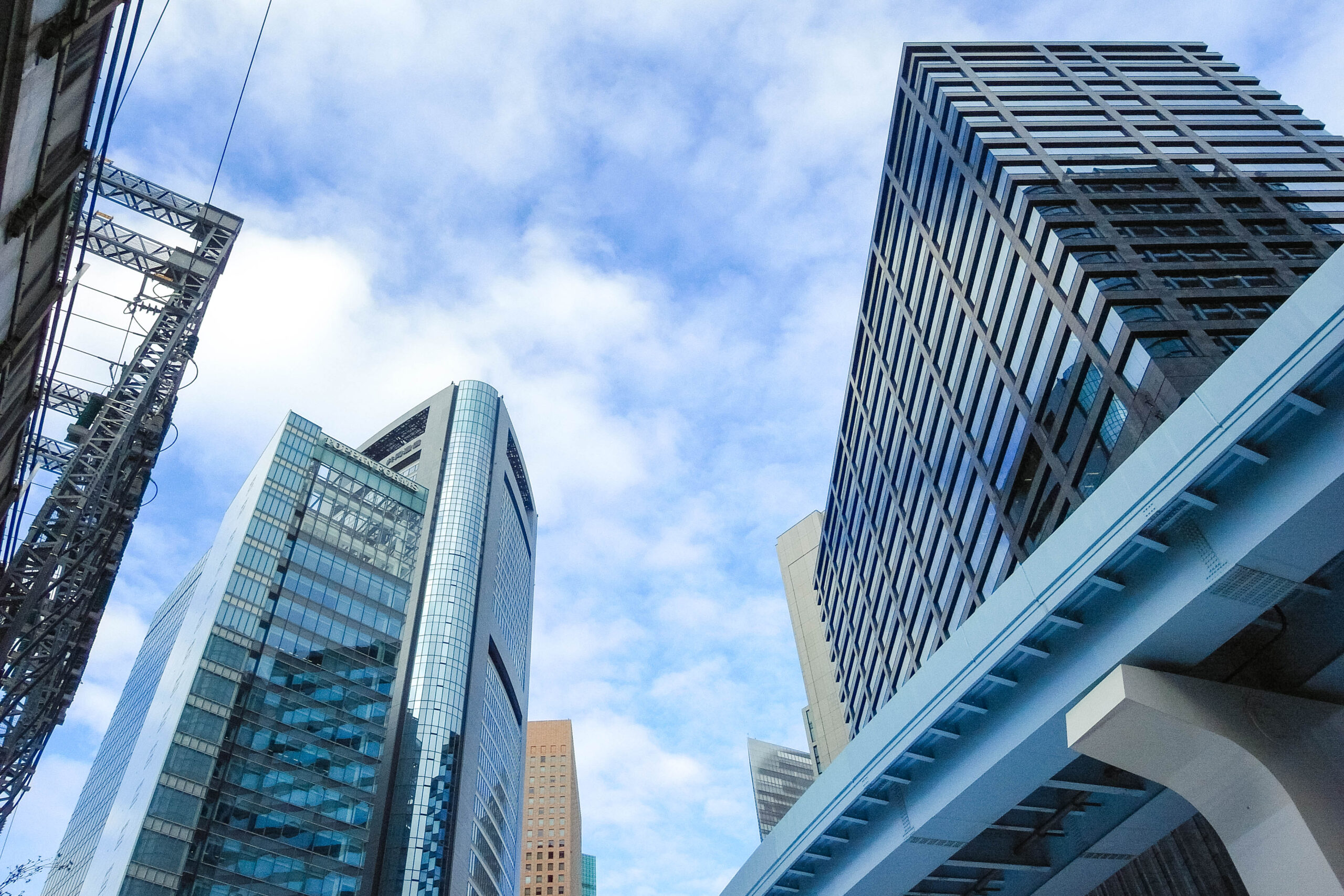 大きなビルを見上げながらホテルへと向かいます。