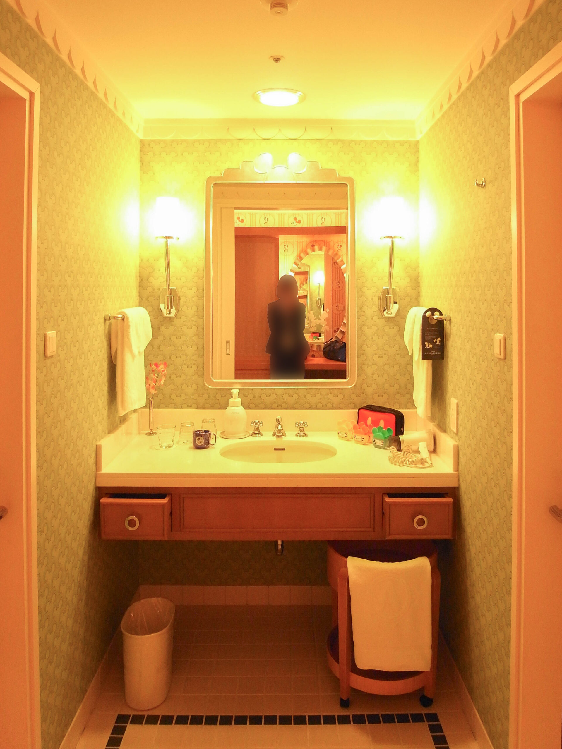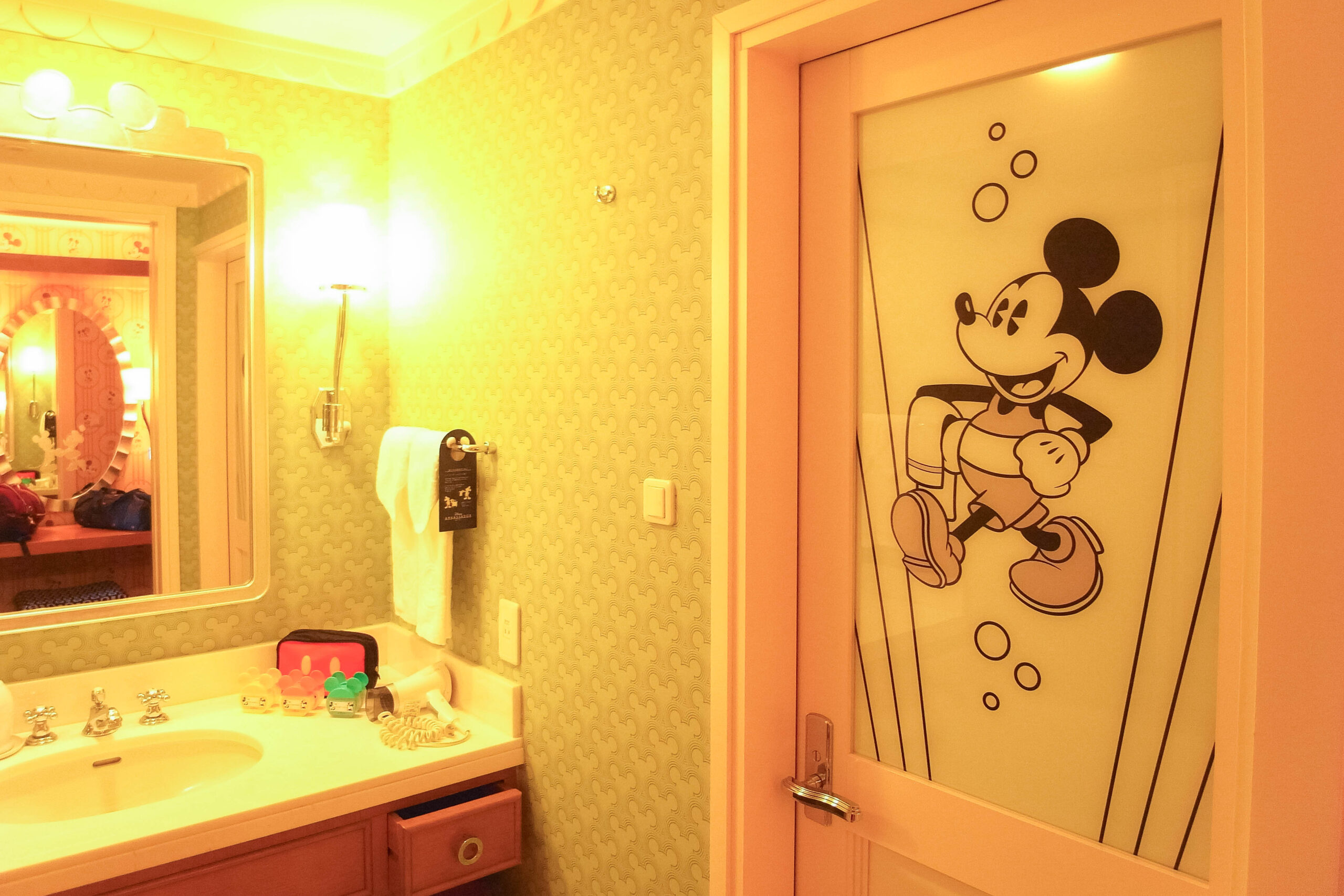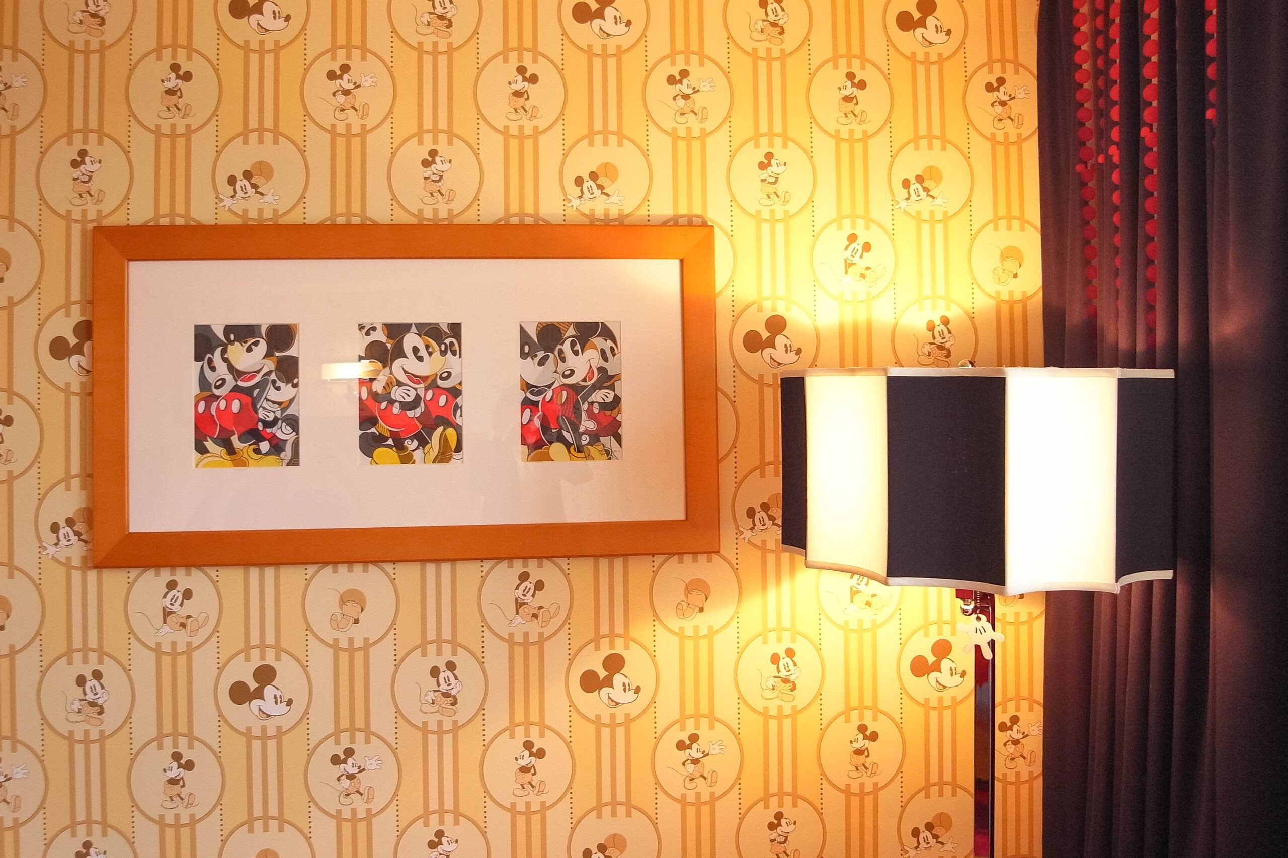ミッキーの壁紙や、絨毯も鮮やかな模様が入っているのに、うるさくなりすぎず全体的にバランスが取れているのがすごいです。