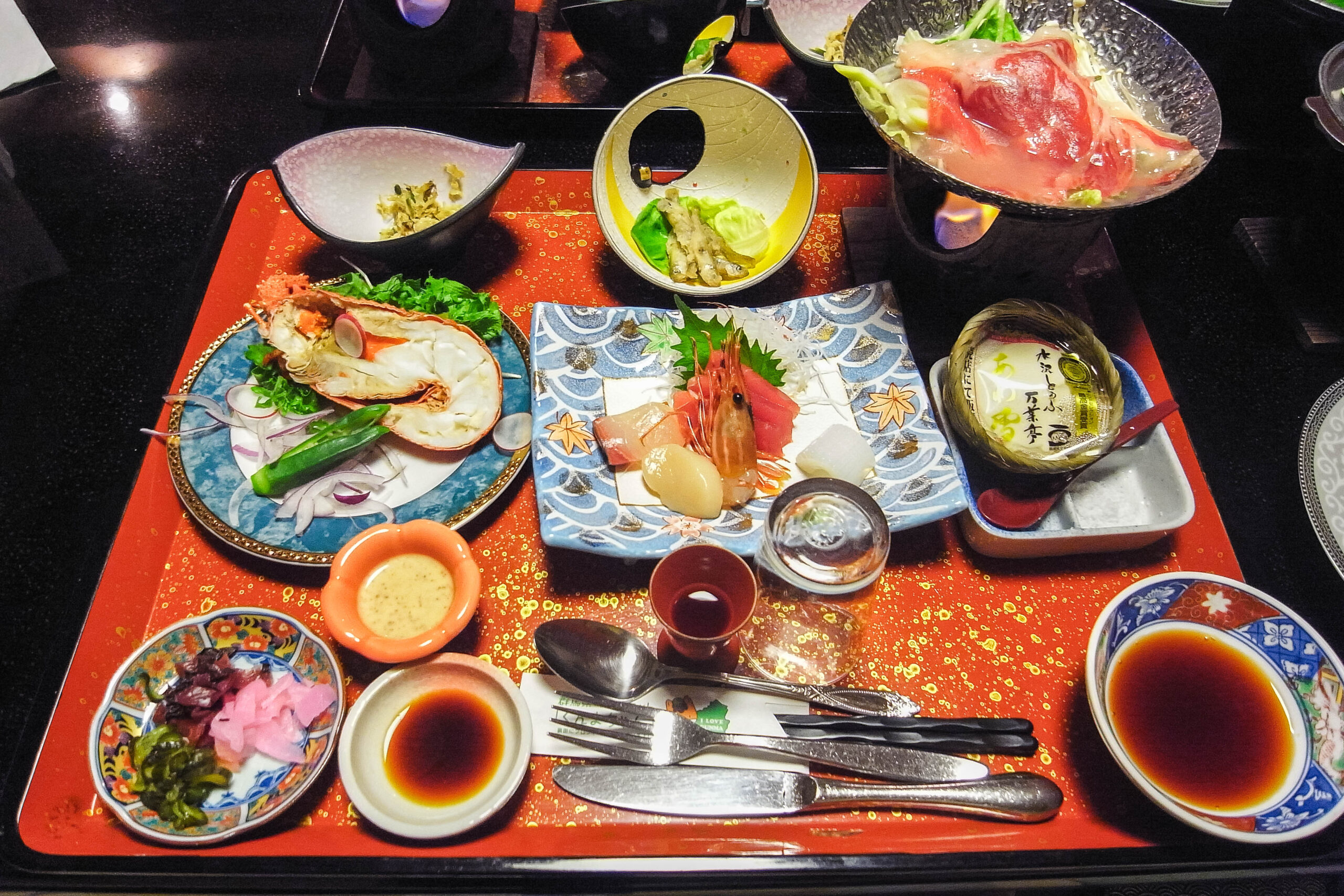 夕食は部屋食で、一度にまとめて運ばれてくるスタイル。