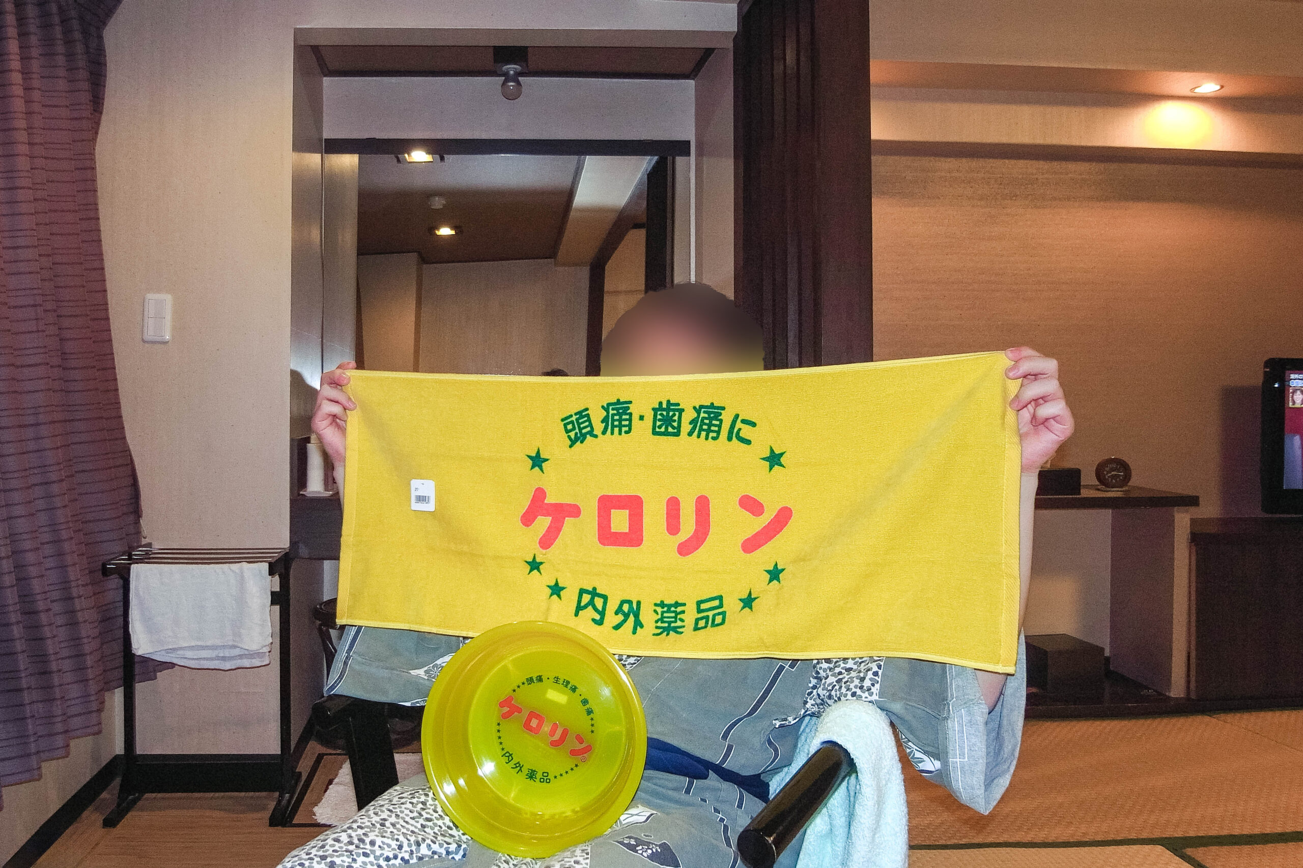 テルマエ・ロマエ好きな夫が購入したケロリン桶&タオルと一緒に記念撮影📸