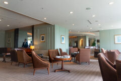 ラウンジ内は天井が高く、壁一面が窓。