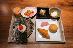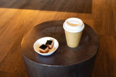 お部屋に荷物を置いて一息ついてからは、1Fのラウンジでウェルカムドリンク&スイーツをいただき、夕食の時間までパソコン作業をしたりしてのんびり過ごしました。