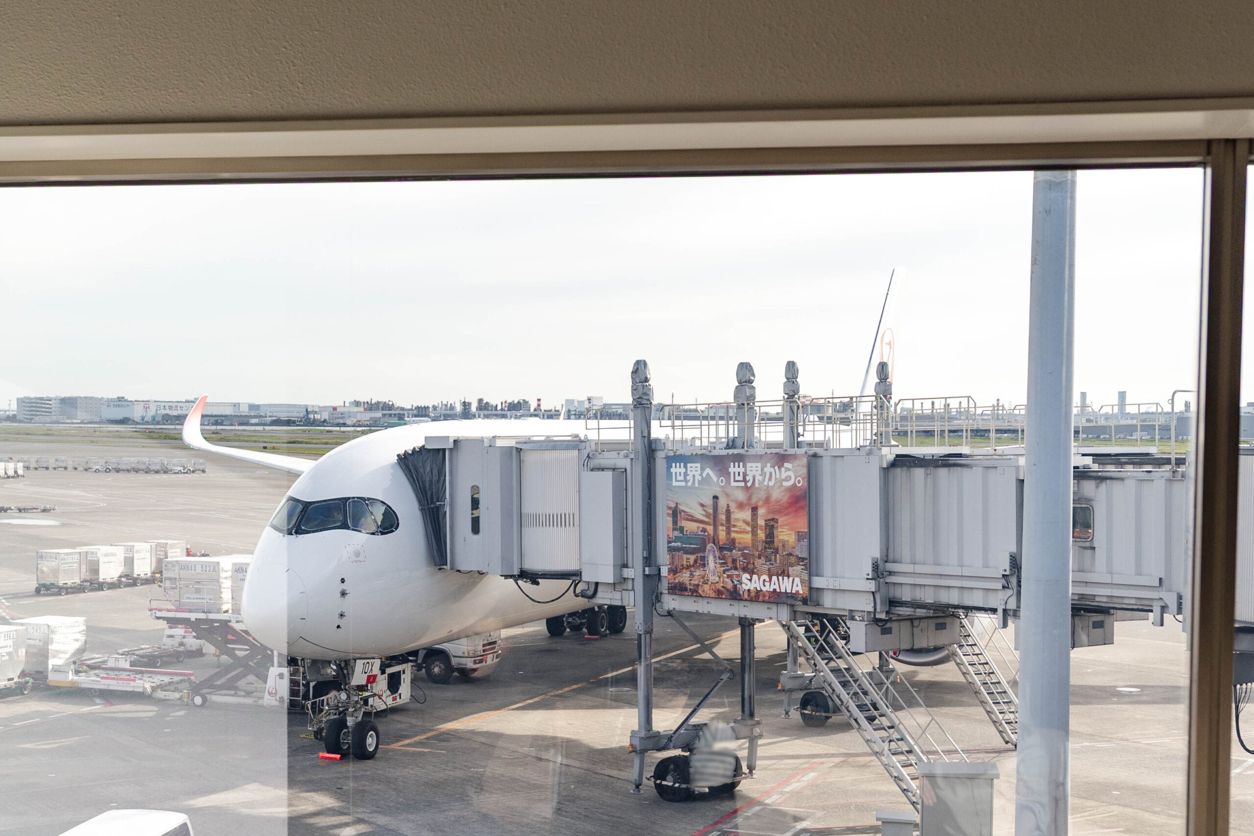ラウンジからJALの機体が見えてワクワク。