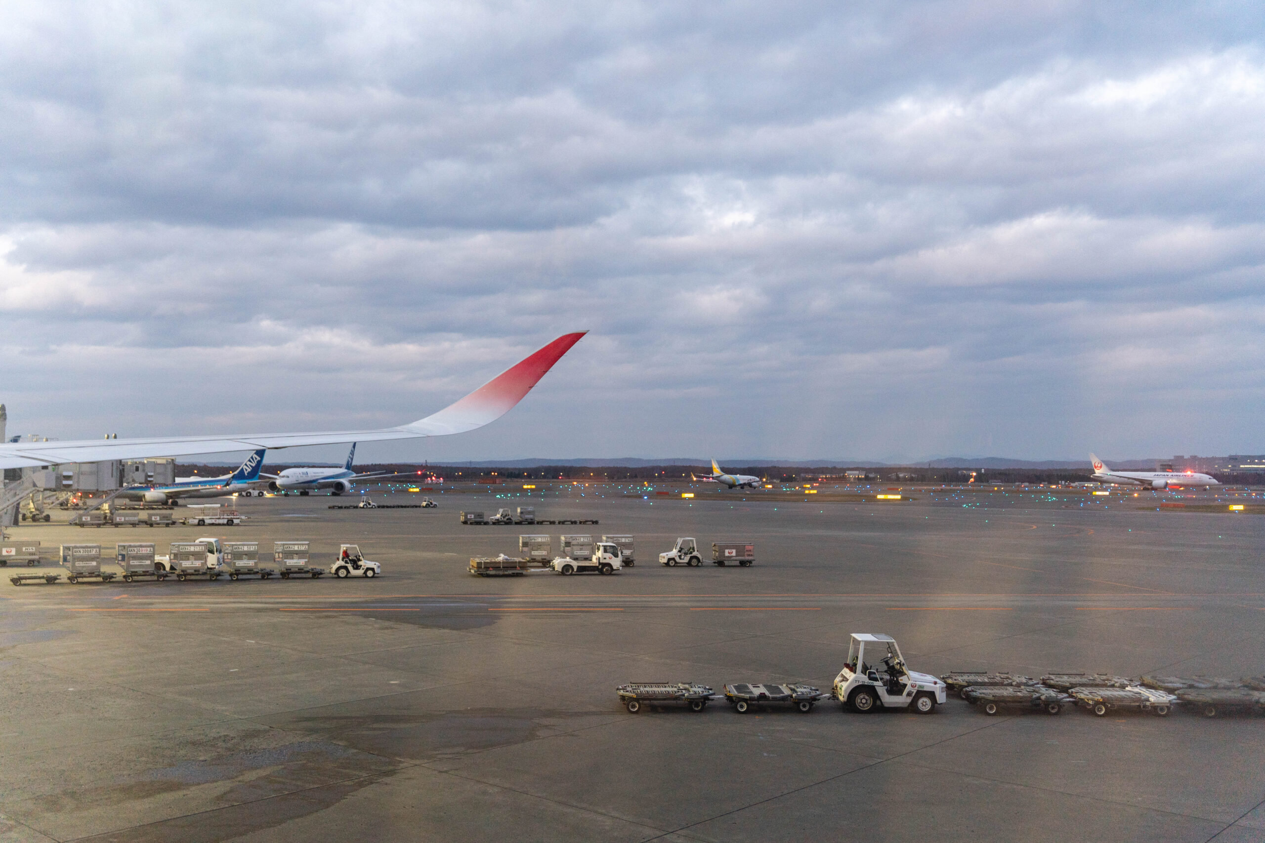 出発から1時間30分、新千歳空港に着陸しホッと一安心。