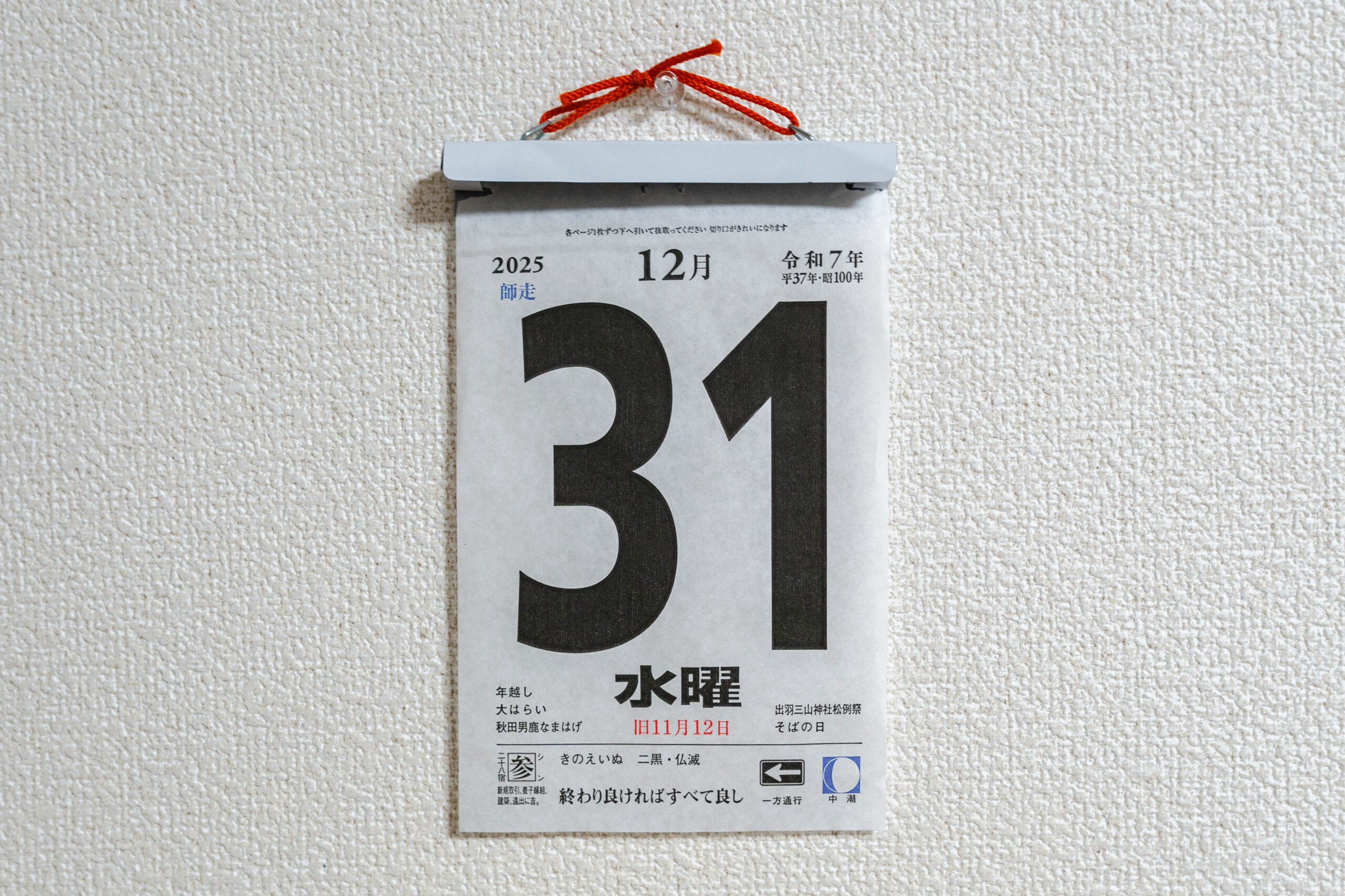 日めくりカレンダーが残り1枚に。